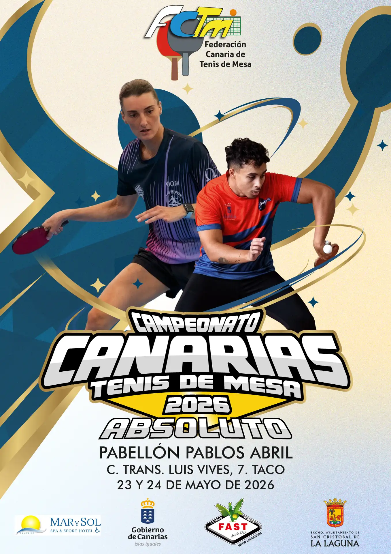 El Campeonato de Canarias 2026 Absoluto se celebrará en el Pabellón Pablos Abril, Taco (Tenerife), los días 23 y 24 de mayo de 2026.